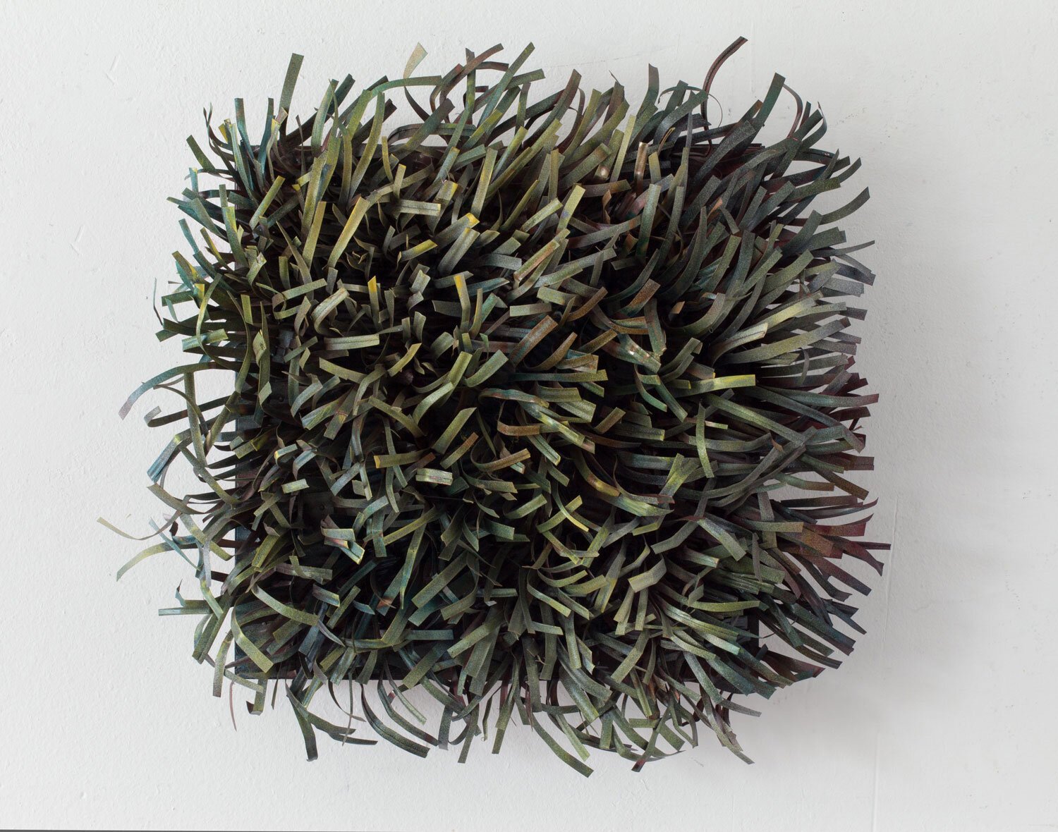 The works here represent my continued exploration of three dimensional landscapes, this time using various types of salvaged metal. Most recently I have been painting onto panels of steel siding, and these works have been tested for outdoor hanging.